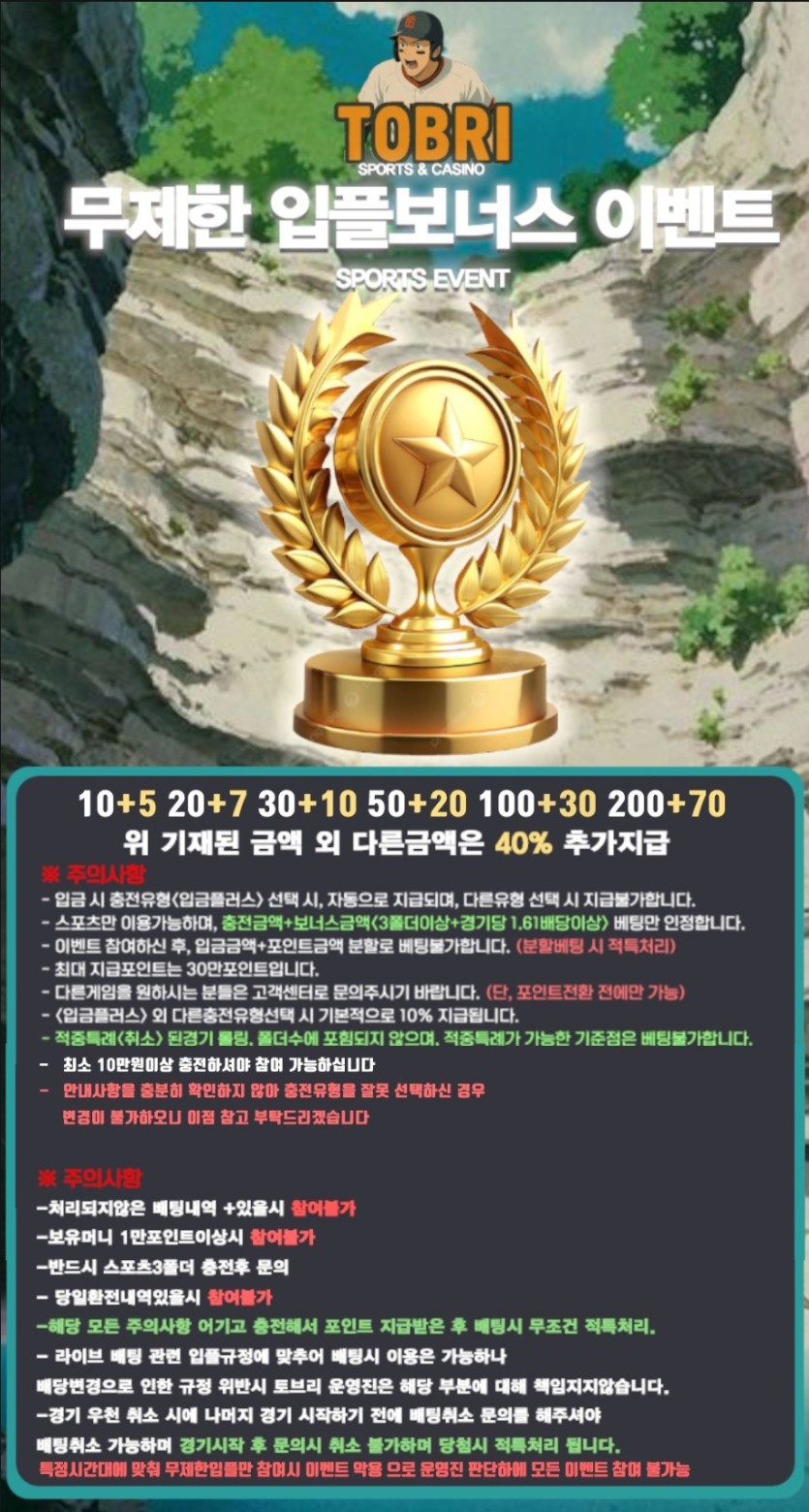 사진과같이 입플이벤트가 엄청납니다!! 이런 타사 있을까요??.. 충환전 간편 빠르고 리그도다양하니 많은 이용해보시길 강추합니다!
