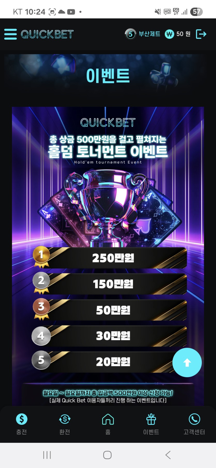 충전금 5백이상 매주 월요일